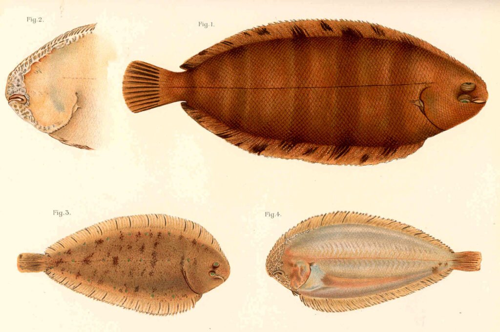 - Спинной плавник с 72-95 лучами начинается перед глазами. В анальном плавнике от 53 до 80 лучей. Грудные плавники хорошо развиты с обеих сторон, с 7-10 лучами. Плавник на глазной стороне асимметричен по форме. Основание хвостового плавника соединено перепонкой с последними лучами спинного и анального плавников, но хвостовой стебель достаточно отчетлив.