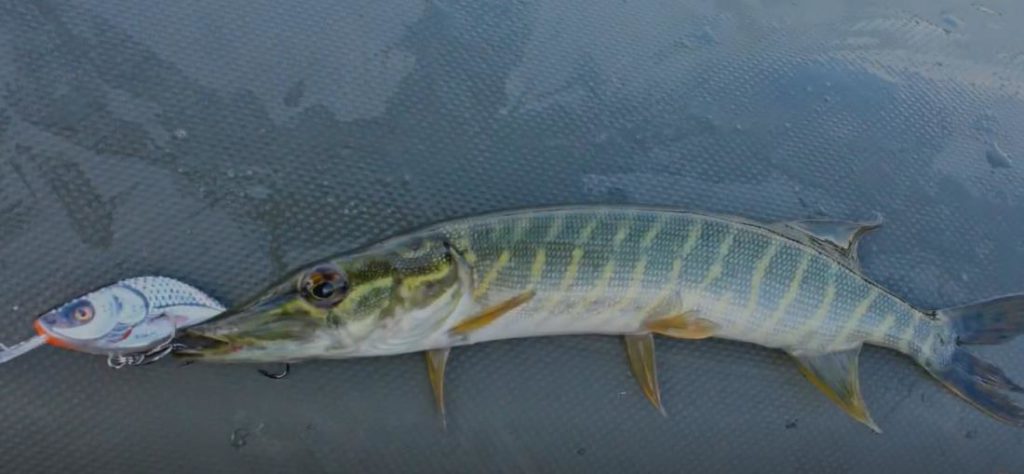 Щука может быть поймана на воблеры, колебалки или силиконовые приманки, проведенные за лодкой, медленно движущейся на моторе. Чаще всего рыболовами используются кренки или шэды. Конкретные модели подбираются под условия ужения, в частности глубины.