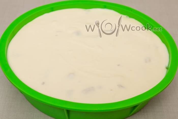 10. Сверху заливаем оставшееся тесто. Отправляем в разогретую до 180 °С на 40-50 минут, в зависимости от высоты формы.