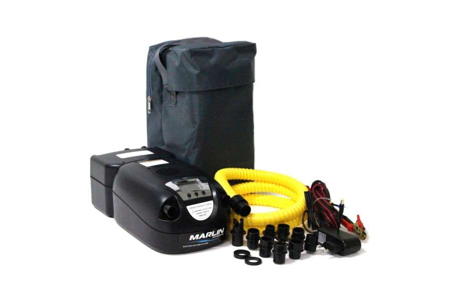 Marlin GP-80 BD — компактный и мощный насос, который славится высокой надежностью. Его производительность составляет 500л/мин. Максимального времени работы в беспрерывном режиме (15 минут) вполне хватает, чтобы накачать лодку ПВХ (в среднем необходимо 3−4 минуты). Во время работы насос создает минимум шума, а шланг длиною 1, 8 м и провод 3 м, позволяет удобно накачивать лодку без какого либо дискомфорта. Работа насоса может осуществляться автономно или с подключением к внешнему источнику электричества, прикуривателю автомобиля. Давление воздуха составляет 0,8 бар.