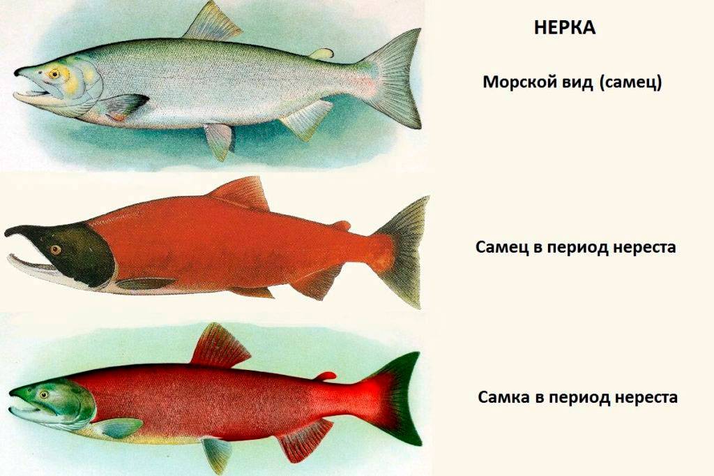 Интересно, что самцы нерки трансформируются в период нереста. Их тело приобретает ярко-красный цвет, чешуя как бы врастает в кожу, а голова становится зелёной. Самки также видоизменяются, но не столь кардинально.