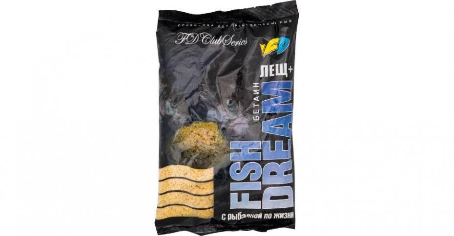 Прикормка Fish Dream Club Лещ+ является одной из самых продаваемых. Это обусловлено отличным составом и реальной действенностью. Она богата белком, обладает ароматом ванили и кокоса, а так же включает в себя множество перемолотых зерен конопли