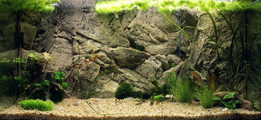 Если камни решено разместить в технике акваскейпа, то лучше выбирать неровные, фактурные и желательно темные. Камни без испещрений, с ровными гладкими краями выглядят неестественно. Пористая фактура камней будет давать лишние тени.