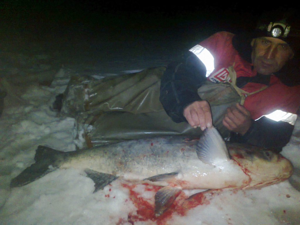 Но следует помнить, что рыба имеет большой вес, поэтому нужно обзавестись большой и крепкой оснасткой. Также придется приложит много усилий, так как она окажет сильное и длительное сопротивление. Во время подсечки рыбы нужно придерживаться натянутого состояния лески. И ждать пока она не ляжет на бок. Это признак того, что она начинает сдаваться и можно смело подтягивать ее к лунке. После можно вытаскивать на берег.
