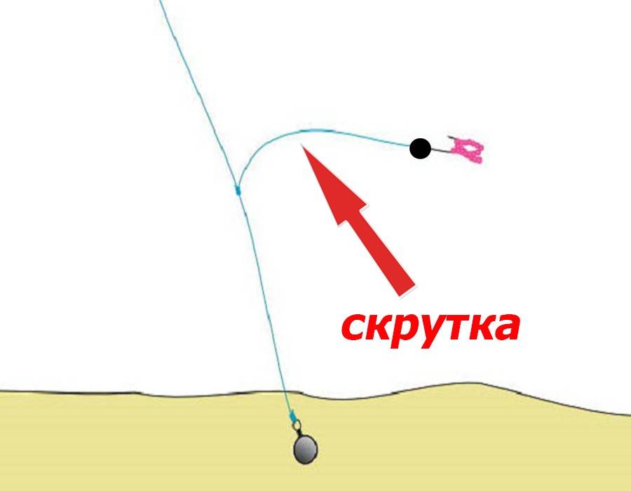 Характерным отличием данного монтажа является применение противозакручивателя (трубочки с надетыми на неё грузилами). С обеих сторон антизакручиватель закрепляется на леске силиконовыми стопорками.