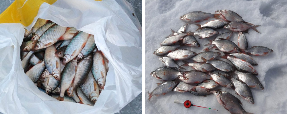Для окуня и карася подходят мормышка и поплавочка, для плотвы — мормышка с насадкой или безмотылкой, но можно использовать и мелкие блесны. Заменив эту снасть на крупную, можно выудить щуку, а для налимов используют жерлицы.