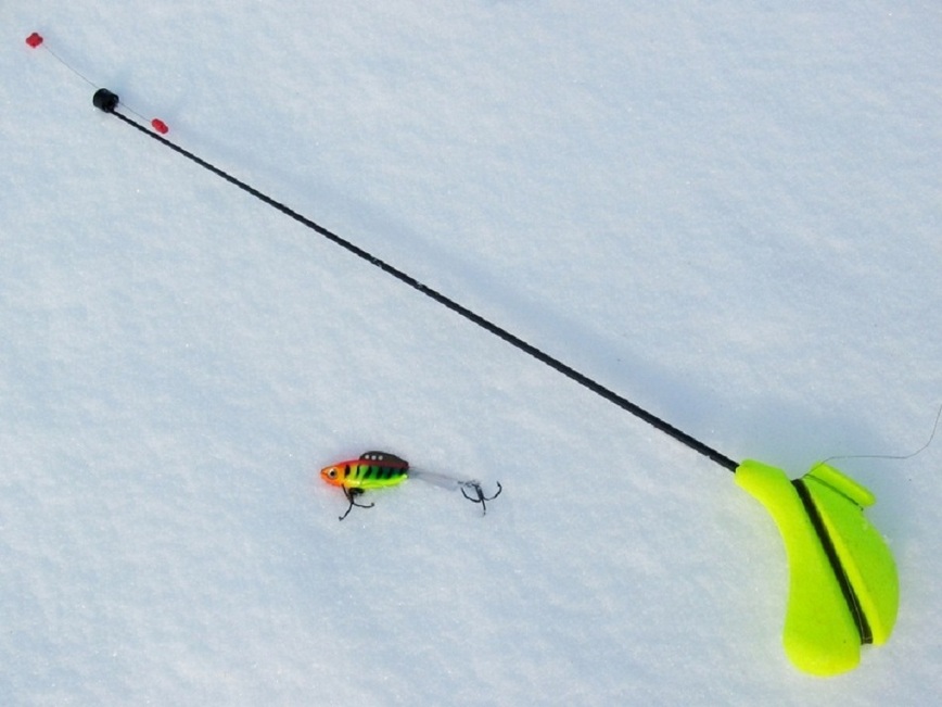 Зимние удочки. Состоит из удилища (в том числе с пропускными кольцами), катушки, лески (и/или шнура), поводка, грузила, поплавка, сигнализатора поклёвки, крючка (одинарника, двойника или тройника), который прикреплён жёстко или подвижно.