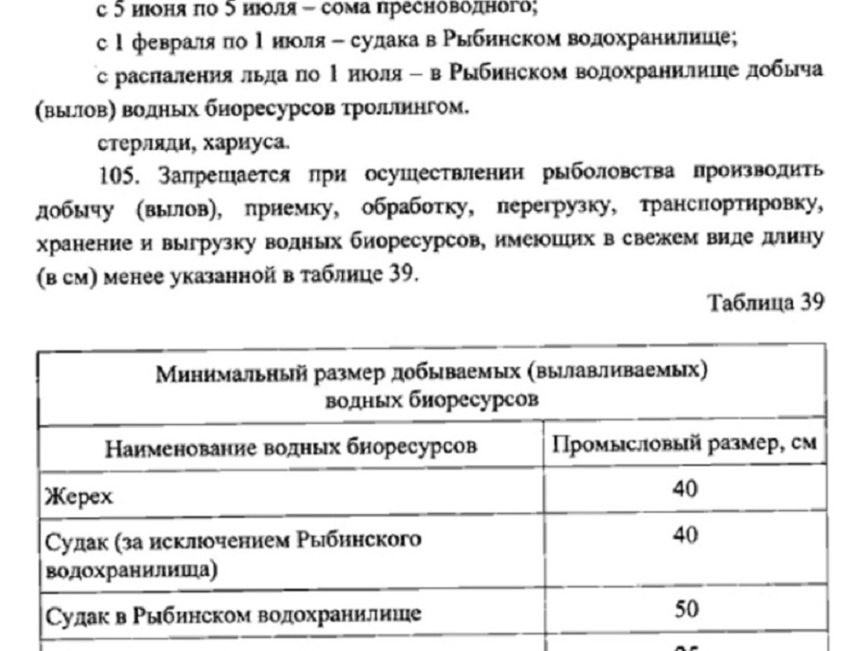 Рыбу каких размеров разрешено брать