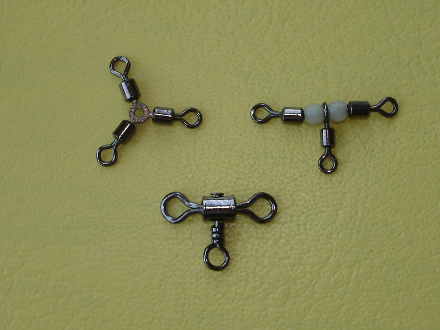 Вертлюжки для монтажа применяют двойные. Они предотвращают перекручивание оснастки (поводков, основной лески) при проводке на течении. Размерность вертлюжков должна соответствовать разрывной нагрузке. Использование самых малых размеров не функционально. Редко для монтажа используют и тройные вертлюжки.