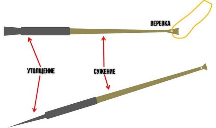 - заостренный наконечник имеет длину примерно 30 см;