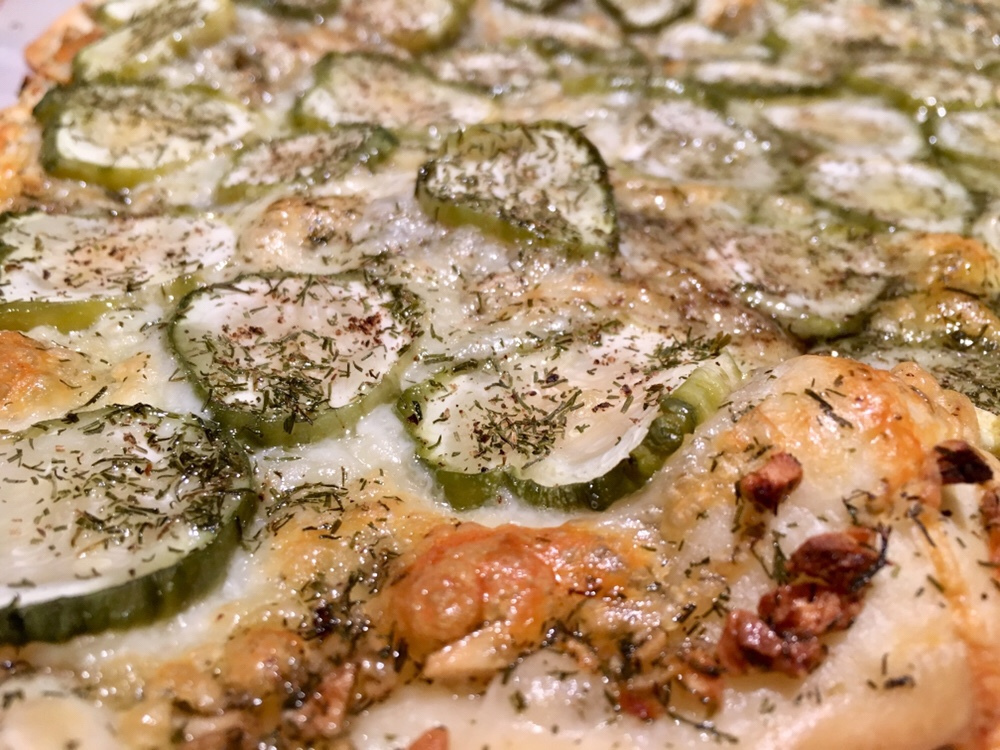 Рецепт домашней пиццы с солеными огурцами и колбасой