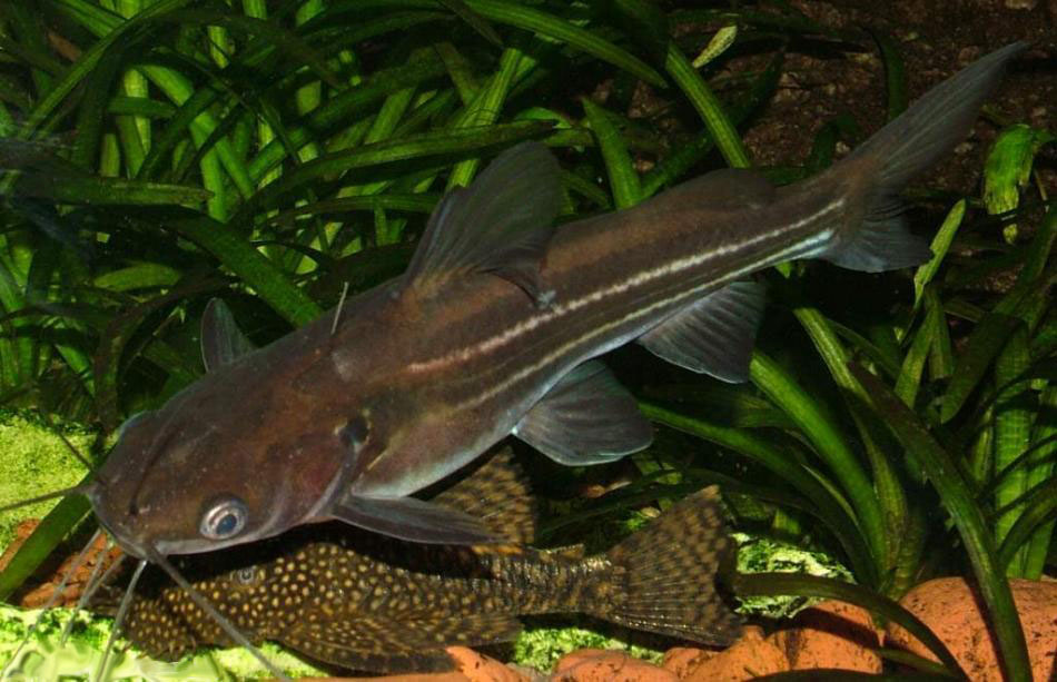 Мистус полосатый, сом-касатка индийский (Mystus vittatus) – игривый представитель подводного мира.