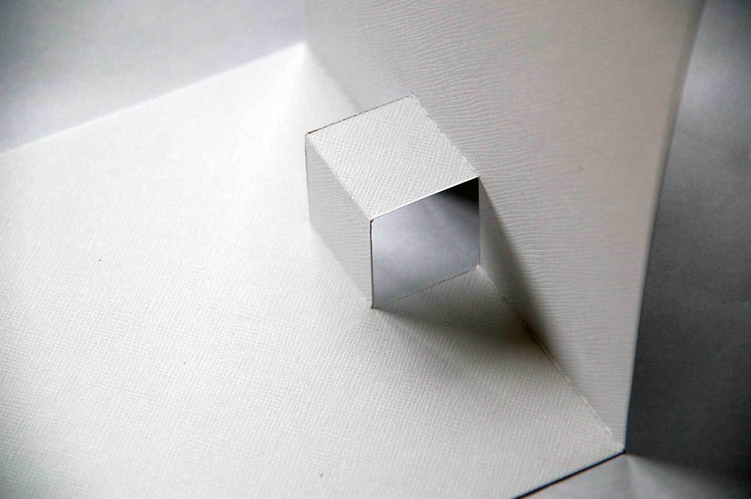 Берем плотную цветную бумагу, складываем ее пополам. В одной половинке вырезаем квадратное окошко.