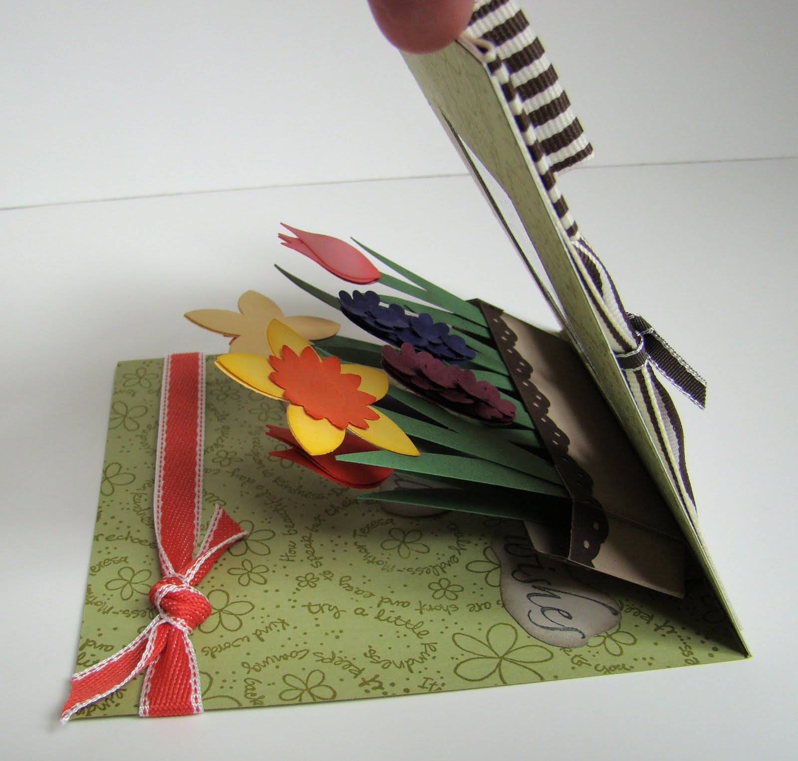 Несомненно порадует одариваемого и такая пышная и яркая открытка с цветами внутри, сделанная своими руками.