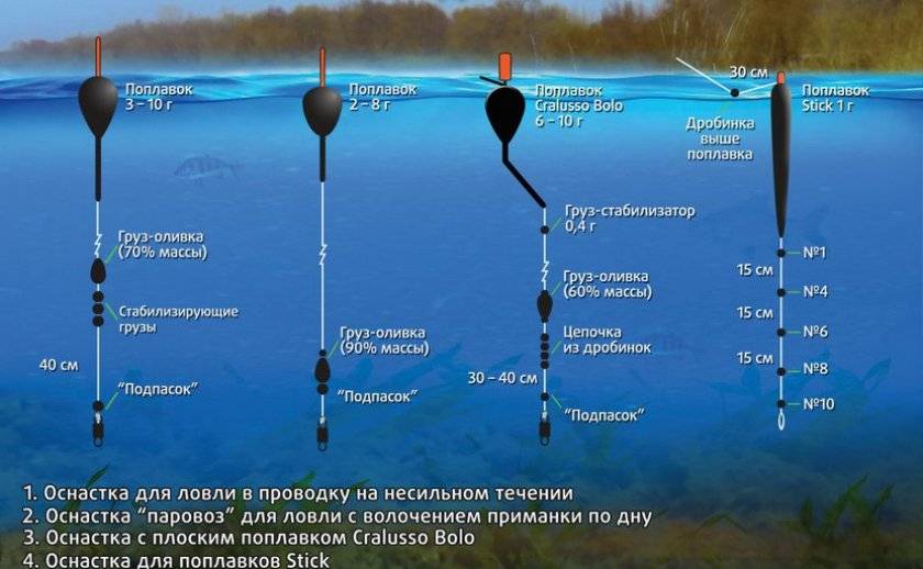 Огрузка поплавков при ловле на поплавочную удочку леща различается в зависимости от того какая из вышеописанных разновидностей будет применятся.