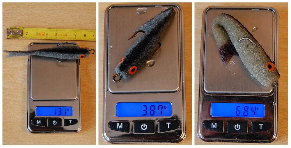 Считается, что мокрая приманка весит около 7 грамм. У меня близкой к этому весу оказалась самая крупная рыбка более 10 см длиной.