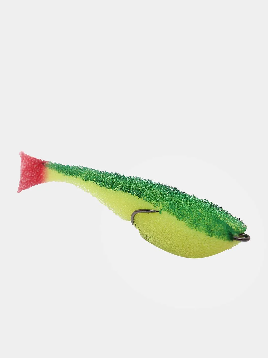 Считается, что такой вариант поролоновой рыбки подойдет для ловли судака, щуки и других хищников.
