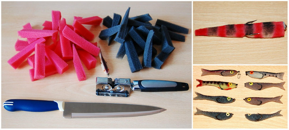 Зато мягкие самодельные приманки более универсальны в плане ловли хищной рыбы, как по открытой воде, так и зимой со льда водоема. Да и процесс изготовление своими руками поролоновых рыбок не требует особых талантов и применения дефицитных инструментов.