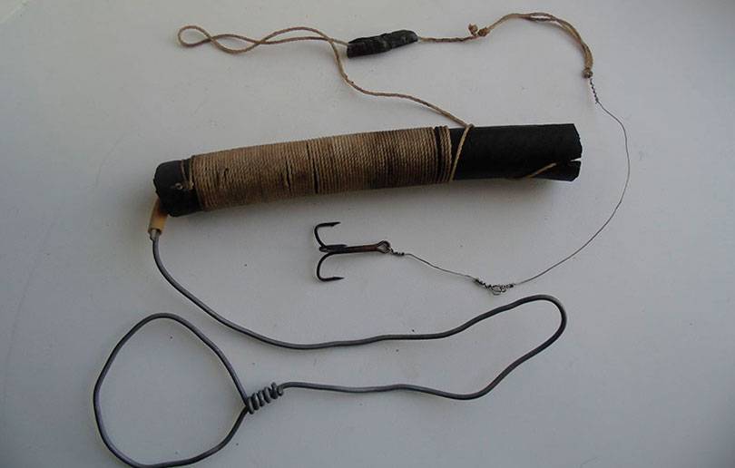 - Снасть готова, а все остальные операции с ней проводятся на рыбалке. Здесь ее крепят к деревянной палке и насаживают на крючок живца.
