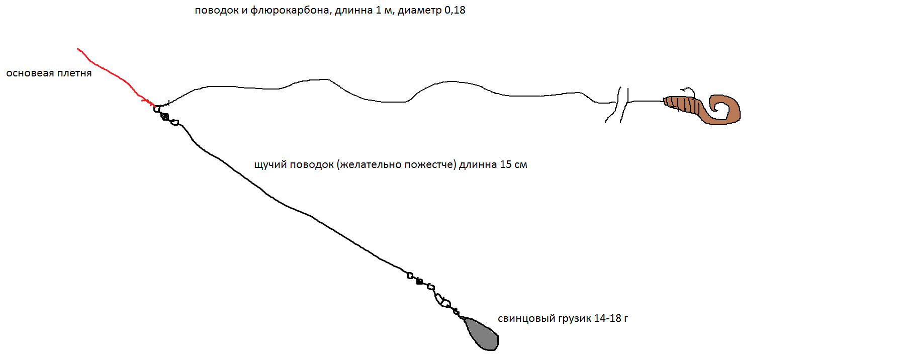 Диаметр лески для грузового поводка 0,2 — 0,4 мм, для отводного чуть меньше в зависимости от условий ловли.