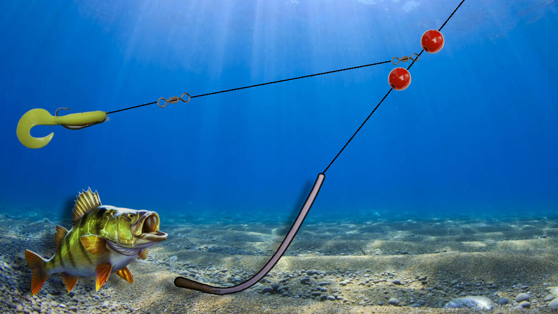 Длина поводка с приманкой значительно превышает длину поводка с грузиком и достигает 1,5 метра. Расстояние можно также регулировать. Все зависит от активности хищной рыбы. Игру приманке придают как вертикальные потягивания, так и горизонтальные.