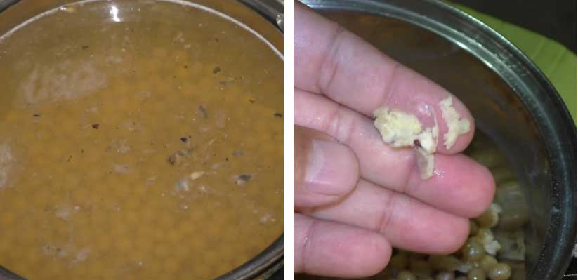 - замочите зёрна, минимум 12 часов. Воды наливайте выше слоя зёрен с запасом. После замачивания – перемелите смесь с помощью мясорубки;