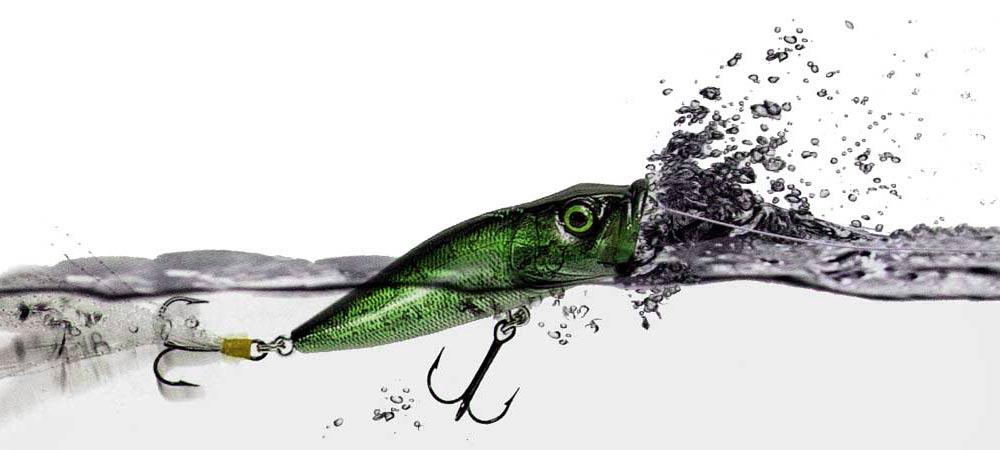 - После того, как воблер стал неподвижен, начинают подмотку шнура катушкой, при этом выполняя короткие и резкие его рывки кончиком удилища. Свидетельством хорошей проводки является характерный булькающий звук и дорожка из пузырей, оставляемая за рыбкой.