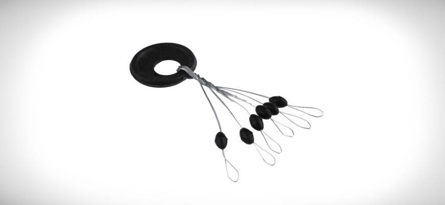 Стопор из силикона/резины похож на кусок ниппельного шланга. Его длина — 3-5 мм. Внутри — полость, через которую проходит леска. Её, для большей надёжности, рекомендуется пропустить через отверстие два раза. Минус таких стопоров — огрубление оснастки и плохое скольжение сквозь кольца.