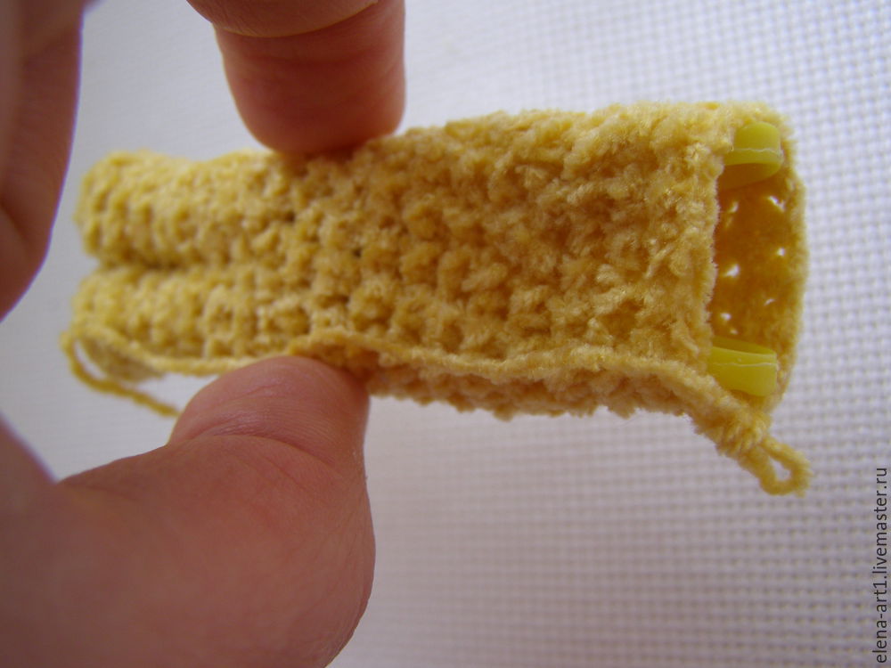 Далее вяжем без прибавок до точки соединения прищепки, у меня получилось 7 рядов. Нить фиксируем и обрезаем.