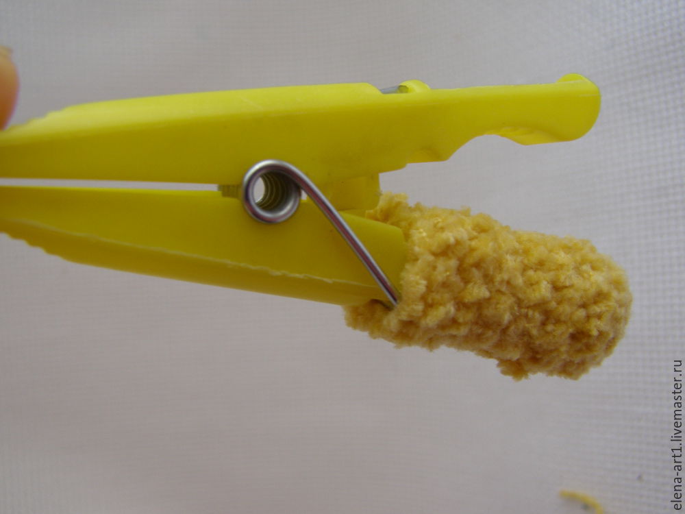 Далее, одеваем лапки на прищепку и обвязываем прищепку по кругу.