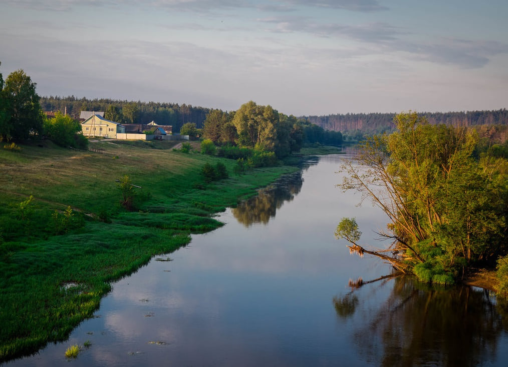 Берега, по большей части, пологие, покрытые лесами (здесь присутствуют березки, осины, дубы) и разнотравными лугами.