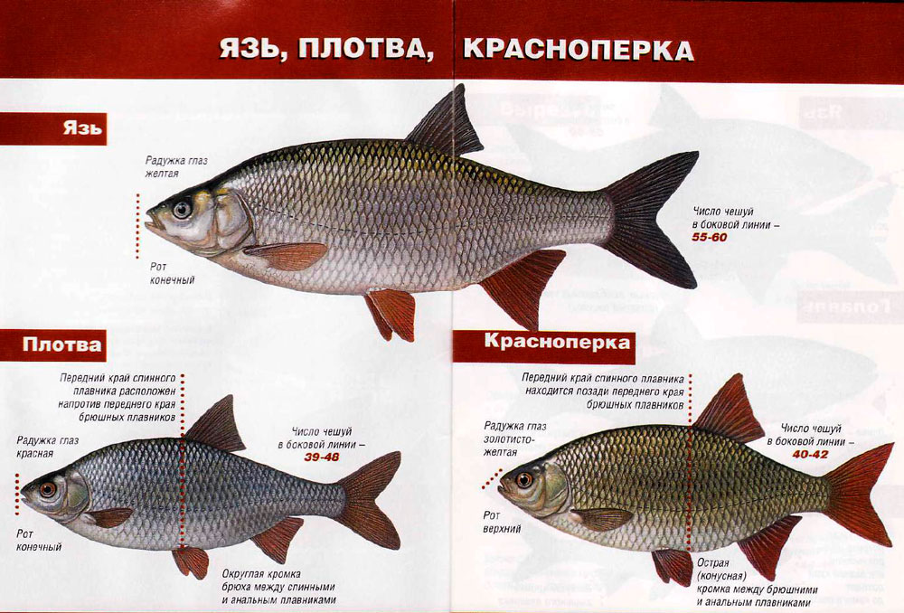 | Чешуя | Чешуйки средних размеров, количество рядов на боковой линии — от 56 до 62 | Крупная чешуя, на боковой линии насчитывается до 48 чешуек | Чешуя средних размеров, на боковой линии располагается от 67 до 78 чешуек |