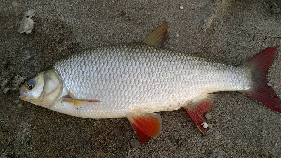 Рыба также сильно напоминает плотву. Хотя имеет более мелкую чешую, светлую спину и желтые глаза.