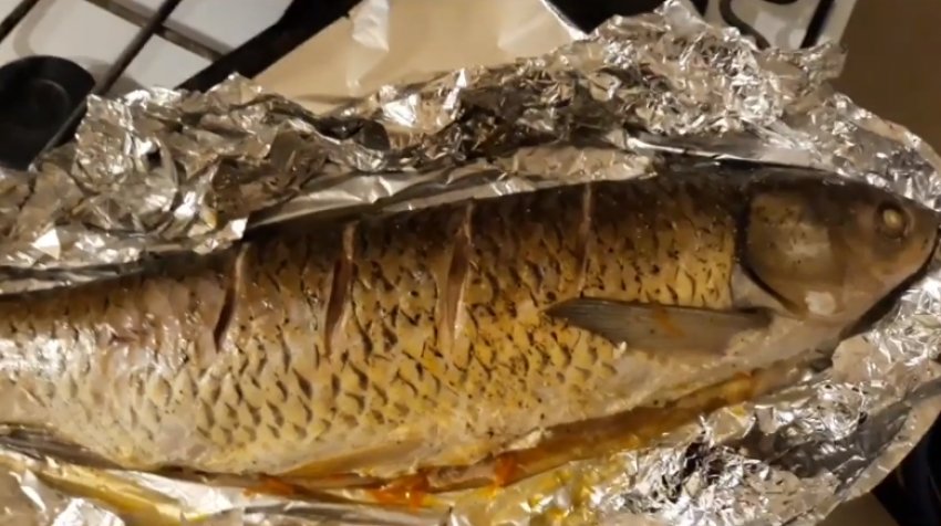 - Белого амура требуется хорошо промыть водой из-под крана, а затем обсушить кухонными салфетками со всех сторон.