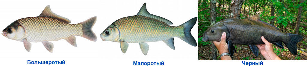 В российских водоёмах можно встретить три разновидности буффало. К самым многочисленным относится большеротый вид, в меньшей степени распространены чёрный и малоротый иктиобусы. От карася и карпа заморский переселенец отличается по нескольким признакам: