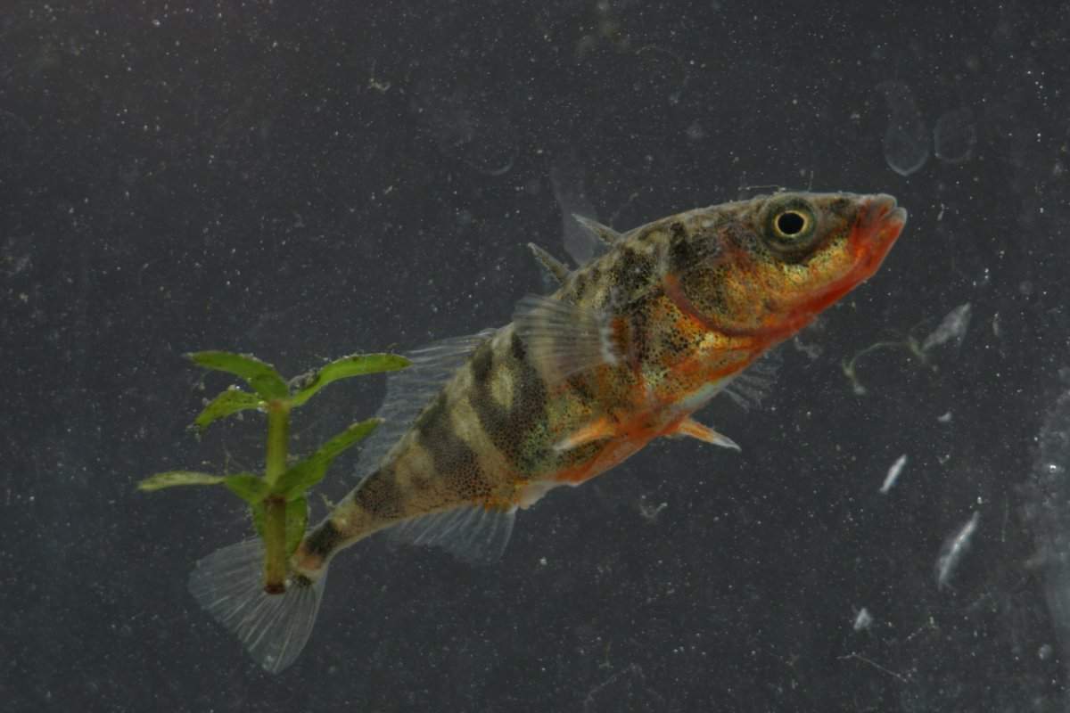 Накануне нереста самочки колюшки приобретают более яркую окраску.