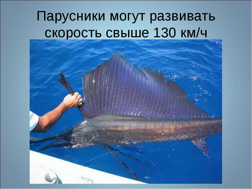 Парусник нерушимо держит рекорд скорости среди рыб. За ним идет его ближайший родственник – марлин. Но оба они – далеко не единственные «гонщики» в Мировом океане. Не намного от марлина отстала рыба вахо, обитающая в водах, омывающих Центральную Америку. Ее рекорд скорости – 78 километров в час.