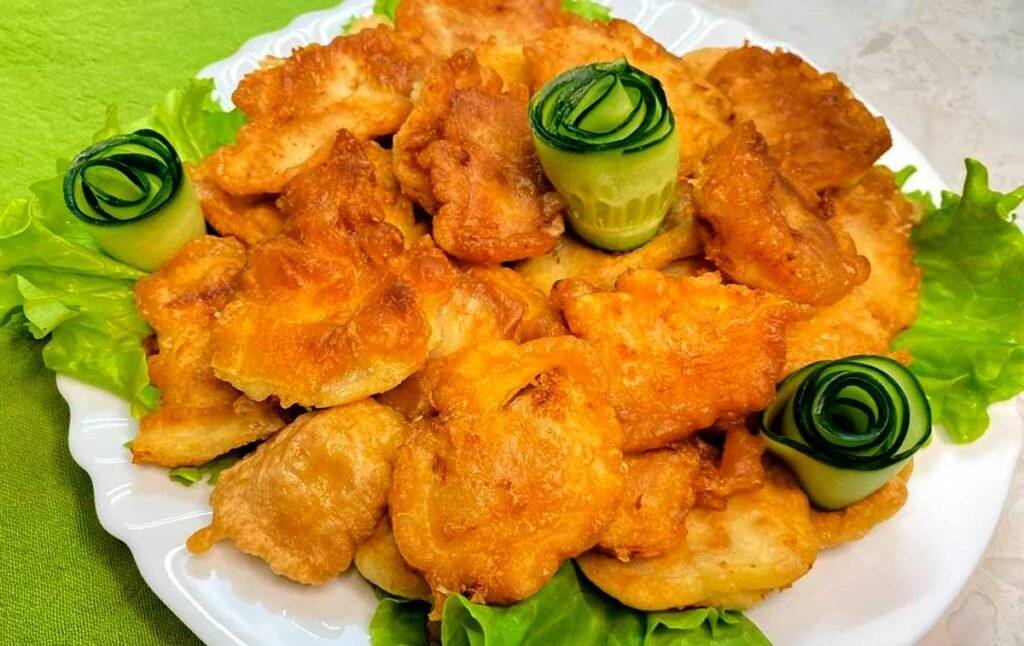 - Рыбу хорошо обвалять в тесте и обжарить с двух сторон до золотистой корочки.