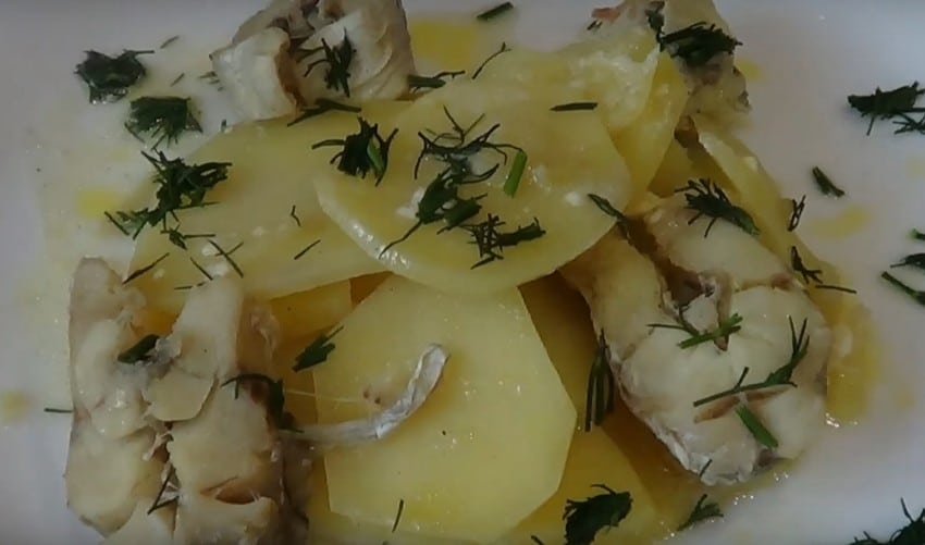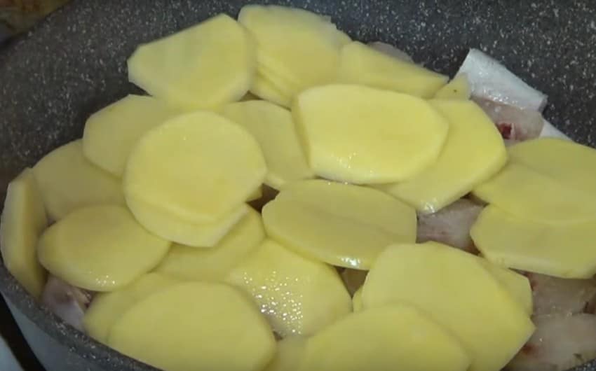 Простой рецепт минтая в сметане, тушеного с картошкой на сковороде