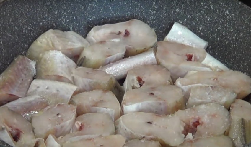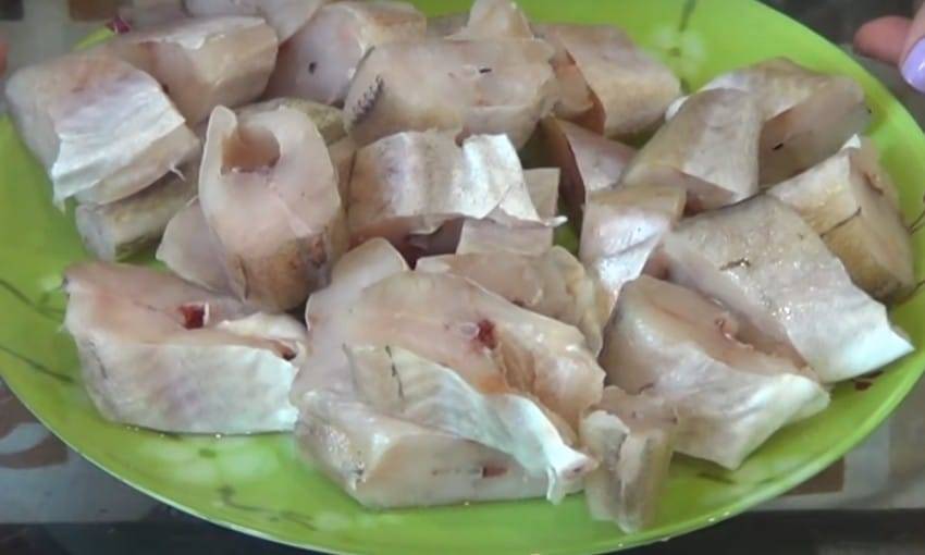 Для приготовления этого замечательного блюда оптимальнее всего взять именно морскую рыбу – хек или палтус, в них мало костей и такая рыба отличается достаточно насыщенным вкусом. Рыбу, прежде всего, необходимо хорошо очистить от шелухи, выпотрошить и промыть. После этого вода обязательно должна стечь. Тушки порезать на небольшие куски и посолить их. Хорошо перемешать и дать рыбе настояться в течение 15 минут.