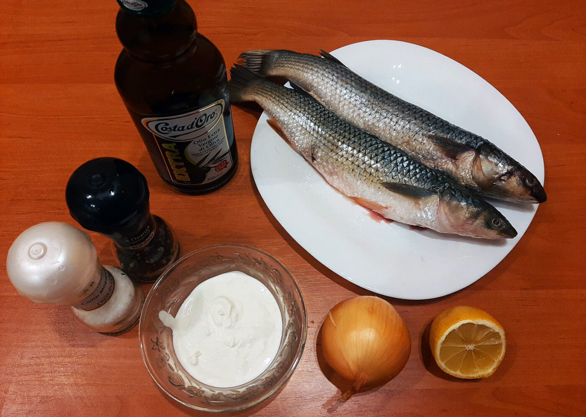 Очищенную и промытую кефаль режут на небольшие кусочки. Голову оставляют на уху или другое блюдо. Выдавливают из лимона сок, поливают им рыбные кусочки. Лимонный сок выполняет роль маринада. Благодаря ему, мясо становится еще более мягким, но при этом кусочки сохраняют целостность во время термической обработки.