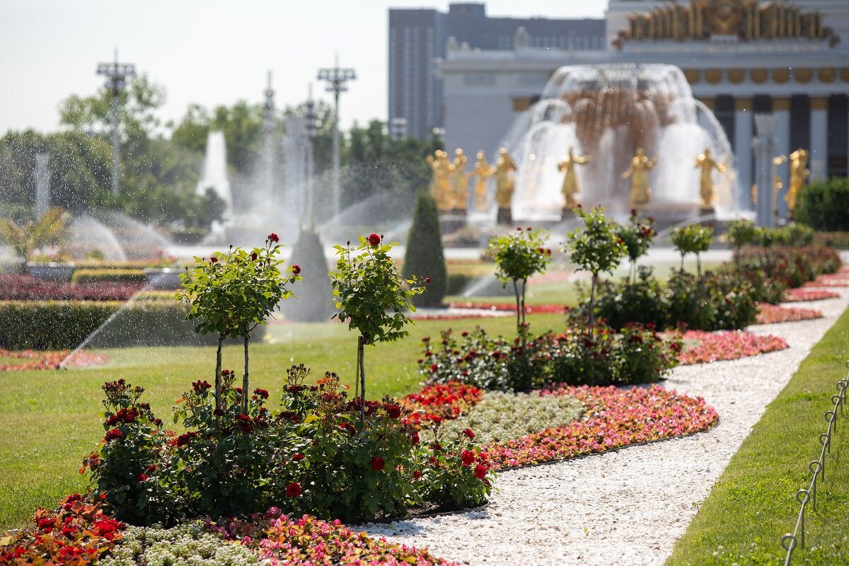 Уникальная система цветников, обрамляющих исторические павильоны и фонтаны, была создана ко второму открытию выставки в 1954 году. Общая площадь партеров составляет около 170 тысяч квадратных метров. Площадь газонов и цветников — более 60 тысяч квадратных метров.