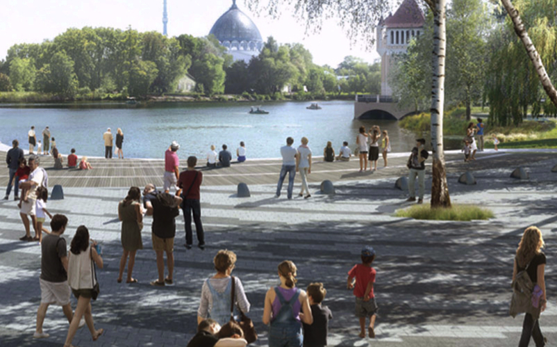 Весной 2018 года в центральной части ВДНХ появится ландшафтный парк площадью 87,3 га с подвесной дорогой, лабиринтом и водным садом. Также будут отреставрирован ряд существующих ландшафтных объектов, сообщает портал mos.ru.