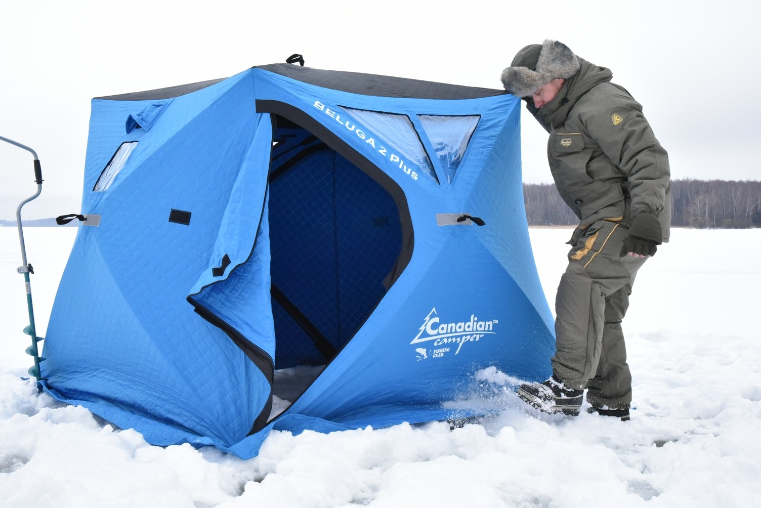Высокий интерес у любителей подледной ловли вызывают палатки, которые устанавливаются самостоятельно.