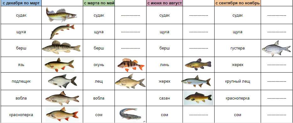 Наиболее энергичный клёв наблюдается ранней весной. Идеальное время для рыбалки в астраханских реках – период с начала марта и до конца апреля. В это время начинается активный клёв окуня, судака, жереха, леща, густеры, плотвы, воблы, щуки и красноперки.
