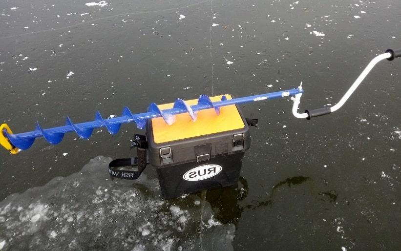 Ледобур, диаметром 110-130, ящик с несколькими удочками и приманками обеспечат рыболова всем необходимым.