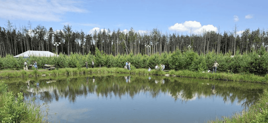 Отличная локация, где клюют щука, карп, сом, форель, амур, осетр и другая рыба. Нижний пруд, где и собираются рыбаки, расположен на территории национального парка. Здесь тщательно следят за чистотой – берега пологие и удобные для размещения снастей, дно без коряг и завалов. Вокруг пруда стоят навесы, под которыми можно переждать дождь или сильный снегопад.