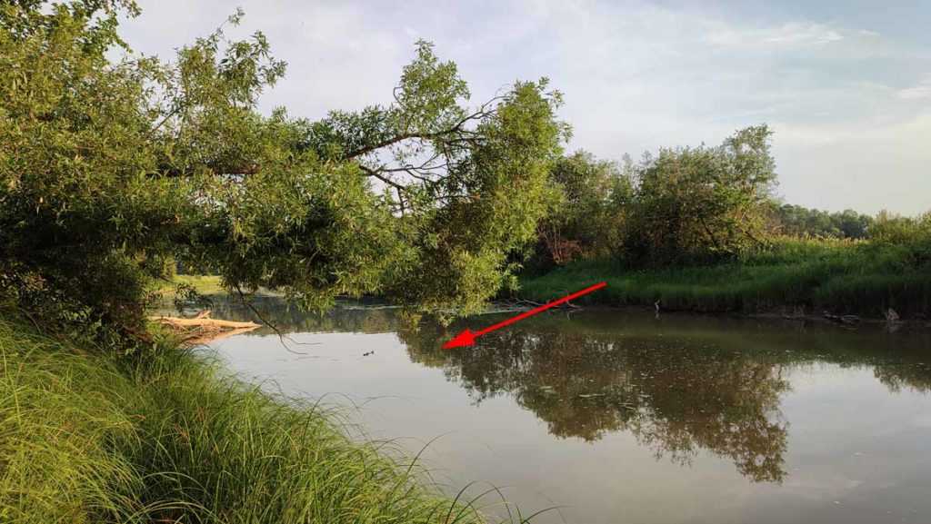 Летом, в жару, участки реки под нависшими деревьями могут быть излюбленным местом обитания большинства видов рыб. Укрываясь от палящего солнца, рыбы находят здесь не только стоянку для отдыха, но и обильный корм. С нависающих веток кустов и деревьев что-нибудь съестное постоянно попадает в реку. И это привлекает в первую очередь рыб, которые предпочитают кормиться с поверхности: верховки, уклейки, чехонь, голавль, некрупный жерех и т.д.