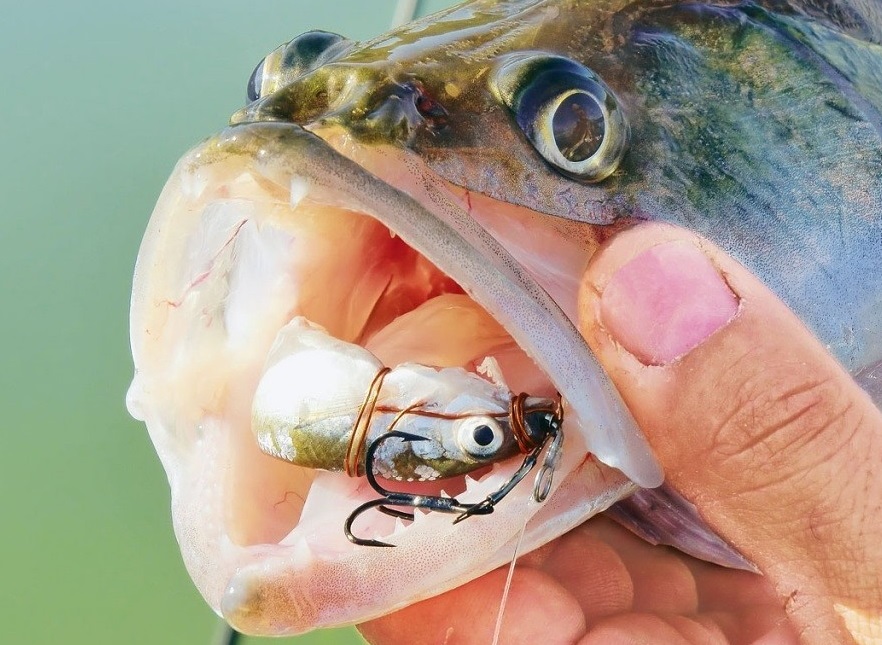 Проводка джига должна быть резкой, а погружение приманки во время паузы медленным. Особенно ранней весной, когда хищник не так активен. Поклевка будет выглядеть как резкий рывок кончика удилища. После этого делают сильную, резкую подсечку.