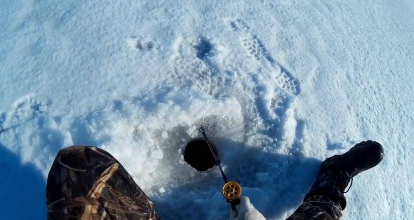 Лунки бурим через каждые 10 — 15 метров друг от друга. На каждую лунку тратим времени не более 15 проводок, при отсутствии активности, идем дальше. Идем до тех пор, пока не находим лунку на которую у нас рыба отзывается, и мы начинаем ловить.